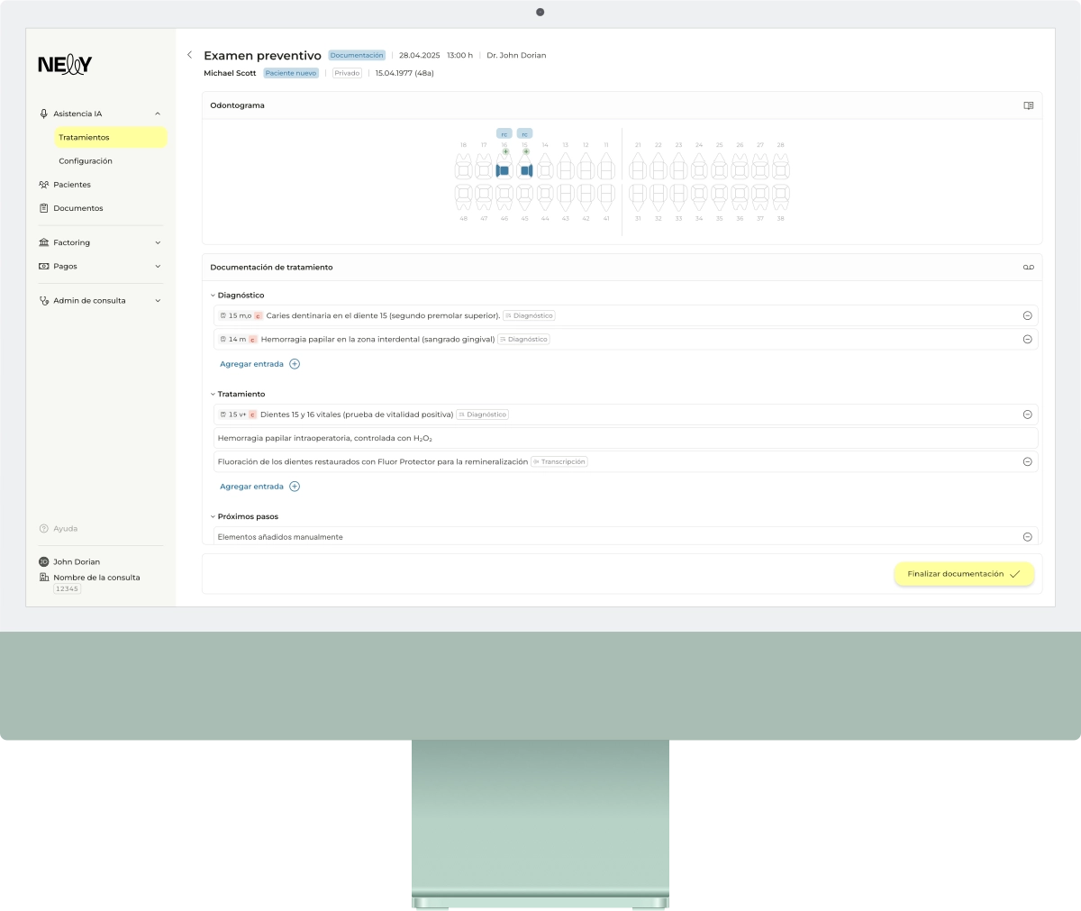 Hablar en lugar de escribir: La IA de Nelly documenta el tratamiento de tus pacientes en tiempo real.